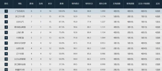 本賽季至今,北京隊以7勝1負高居聯盟第三,僅次于廣東隊(8-0)和廣廈隊(7-1),同樣擁有豪華陣容的上海隊(6-2)第五,沒有楊瀚森的青島隊(7-1)第四。