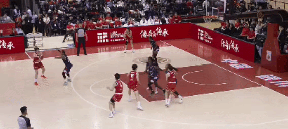 隨即,張子宇再上場,籃下面對包夾,強打得手: