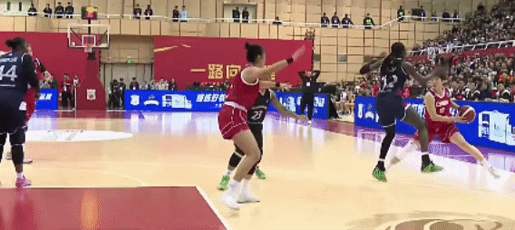 進入到下半場,中國隊還是小陣容,陳明伶打中鋒,唐子婷、羅欣棫打前鋒,張曼曼和楊舒予后衛,羅欣棫馬上三分命中。緊接著,楊舒予和羅欣棫再度配合成功。