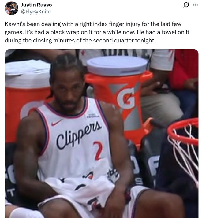 在哈登離隊之后,小卡肩膀上的責任明顯變得更重,快船隨隊記者Justin Russo也曝出小卡實際上一直是在帶傷作戰,右食指傷勢始終困擾著他。