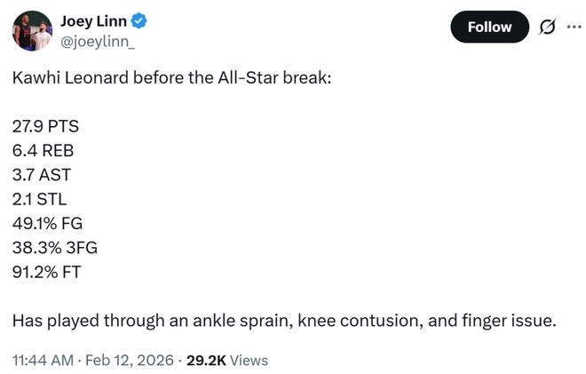 另外一名快船記者Joey Linn更是曝出,除了手指傷病之外,小卡實際上還帶著腳踝扭傷和膝蓋挫傷在堅持作戰。