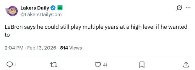 最后詹姆斯坦言只要自己愿意,仍能以高水平狀態(tài)繼續(xù)征戰(zhàn)多個賽季。