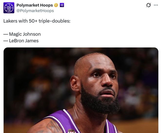 同時詹姆斯也成為魔術師之后,湖人隊史第二位至少50次拿下三雙的球員。