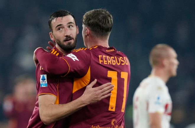本場比賽羅馬排出3421陣型。埃文-弗格森頂在最前面。馬蒂亞斯-蘇萊和迪巴拉聯(lián)袂出擊。切利克、克里斯坦特、夸迪奧-科內(nèi)和韋斯利-利馬組成4中場。詹盧卡、曼奇尼、焦烏科夫斯基和埃爾莫索3后衛(wèi)首發(fā)出戰(zhàn)。斯維拉爾擔任首發(fā)門將。沙拉維、多夫比克、皮西利和吉拉爾迪坐在替補席待命。