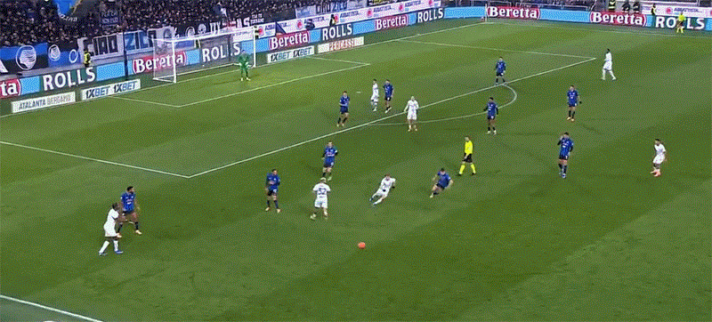 有這么一幕畫面:國米與亞特蘭大之戰里,德凱特拉雷沿右路銜枚疾進,巴雷拉追不上,迪馬爾科回追出腳,非但未能實現斷球,甚至把球踢出邊線都沒能做到。于是CDK控球、轉移,形成了一次絕佳的反擊機會。
