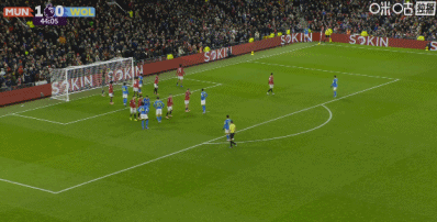 第45分鐘,齊爾克澤頭球烏龍助攻,克雷伊奇頭球破門扳平!曼聯1-1狼隊