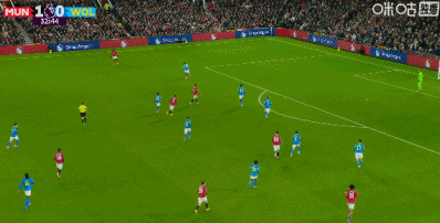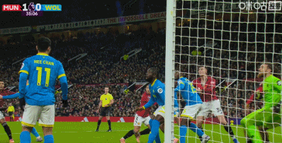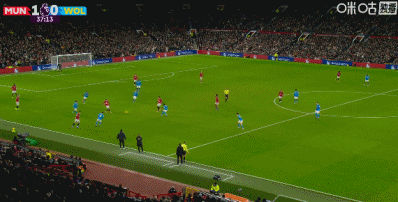 ?第45分鐘,齊爾克澤頭球烏龍助攻,克雷伊奇頭球破門扳平!曼聯1-1狼隊