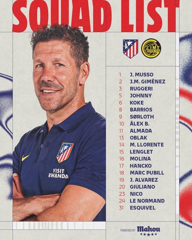 北京時間1月28日,馬競官方公布了歐冠主場對陣博德閃耀的大名單,格列茲曼缺陣,阿爾瓦雷斯、瑟洛特在列。