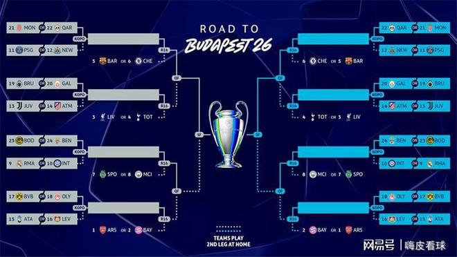 從歐足聯公布的淘汰賽對陣圖來看,因為是“二選一”的關系,其實是左右對稱的。看起來有些復雜,下面不妨從另外一個角度簡化一下,更加清晰一些。