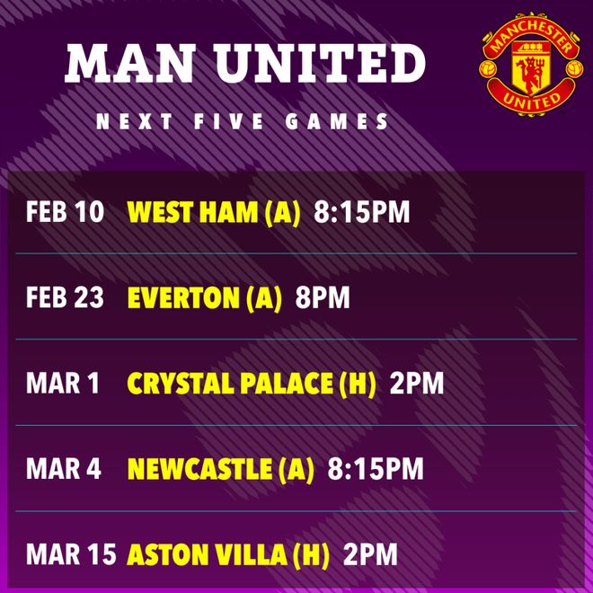 曼聯將于下周二做客倫敦挑戰西漢姆聯,隨后有長達13天的休整期,下一場比賽是2月23日做客埃弗頓。卡里克將獲得更充沛的向球隊灌輸自己理念的時間,按照現在的勢頭,紅魔本賽季進入英超前五,重返歐冠聯賽,幾乎沒有懸念。
