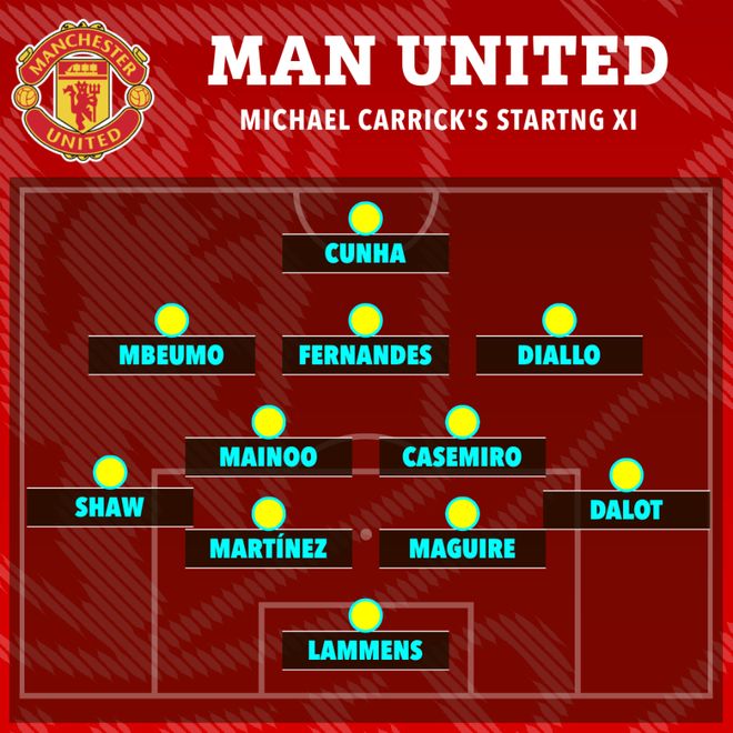 本場比賽前,曼聯在夢劇場紀念了慕尼黑空難68周年。卡里克沿用了上輪3-2擊敗富勒姆的首發陣容,他執教后4場比賽只有一個首發調整,就是庫尼亞替代了受傷的帕特里克·多古,這跟阿莫林47場英超只有一次首發不變截然相反。
