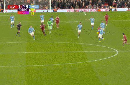 第74分鐘,利物浦前場任意球機會,面對只有兩人的曼城人墻,索博斯洛伊轟出世界波,皮球擊中右側立柱后入網,門將唐納魯馬幾乎毫無反應。利物浦1比0領先。