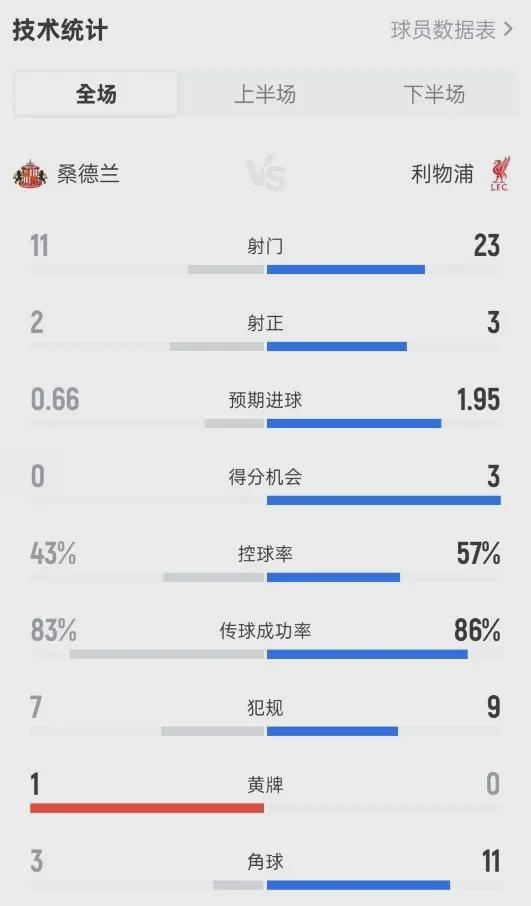 全場數據慘淡:控球率57%、射門23-11遙遙領先,但射正僅3次!預期進球(xG)1.95卻只打入1球,甚至這唯一的進球還是范戴克頭球反彈入網,帶有極大的運氣成分。