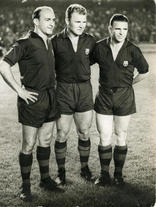 在巴薩為他舉行的告別賽上,迪斯蒂法諾與普斯卡什也穿上了巴薩球衣,三位19世紀50年代的偉大巨星留下了這張寶貴的合影。