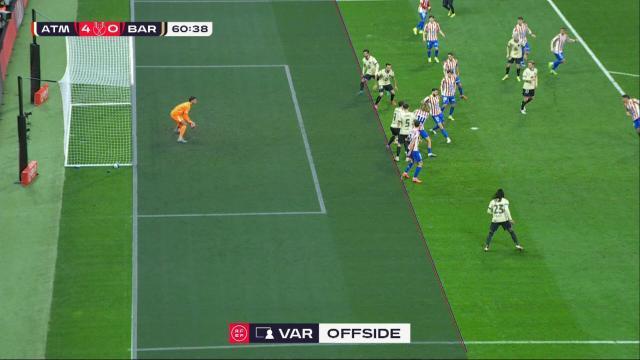 巴薩上半時0比4落后確實沒有借口,但下半時庫巴西的進球被裁判吹掉,還有朱利亞諾·西蒙尼飛鏟巴爾德——他的防區本場被屢次打爆——沒有吃到紅牌,也著實讓巴薩人意難平。第52分鐘,亞馬爾從右側開出戰術任意球,費爾明在禁區前沿推射,皮球在禁區內經過連續碰撞后,最終由庫巴西補射破門,然后經過了長達6分鐘的視頻回看后,主裁判最終宣布巴薩進球無效。