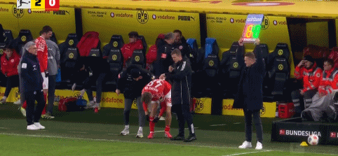 第27分鐘,美因茨換人,斯特凡-貝爾傷退,波圖爾斯基替補上場