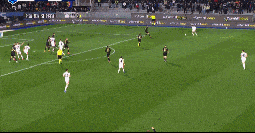 比賽開始后,主隊比薩早早就扔出超級大巴車,堅決打防守反擊;面對強大的紅黑軍團,這樣的戰術才是上乘,雖然米蘭牢牢控制了場面局面,但是卻是無法打破僵局,直到第41分鐘,阿特卡梅送出精準傳中,洛夫圖斯-奇克搶點破門,米蘭1-0領先。