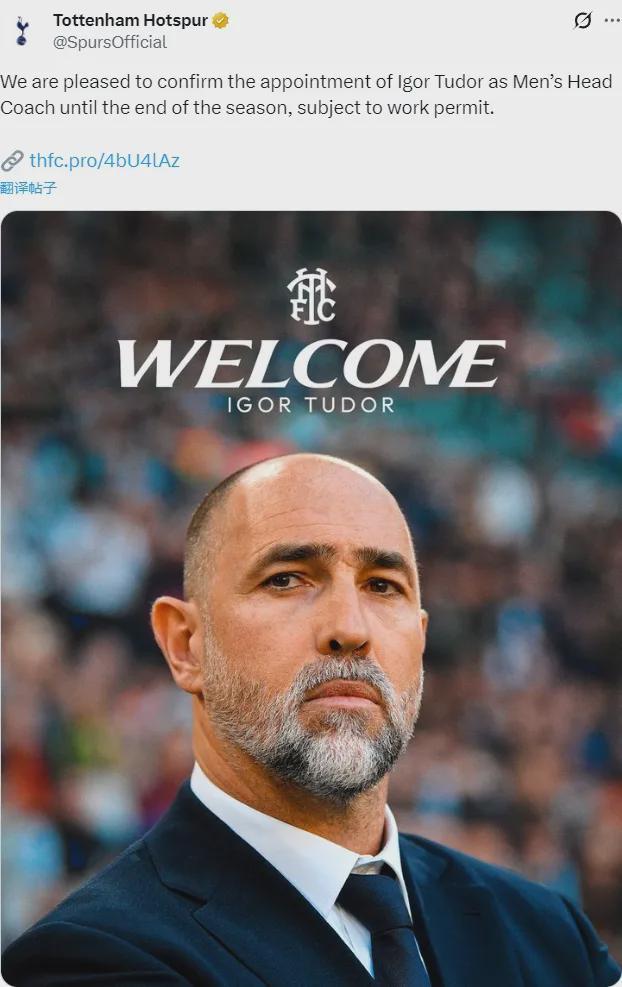 官方:熱刺宣布任命圖多爾為主帥,合同直到本賽季結(jié)束(羅馬諾說(shuō)不含延長(zhǎng)條款)。