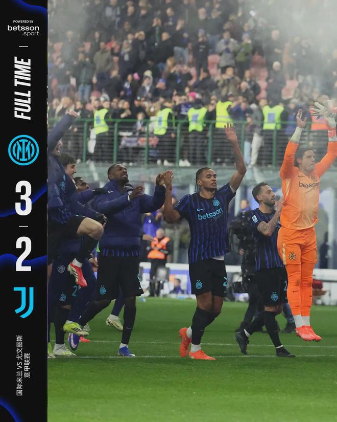 3-2,國米拿到了寶貴的3分,8分的領跑優勢讓他們看到了冠軍的曙光。